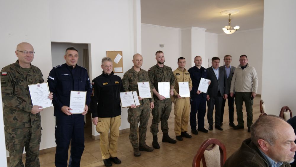 Każdy epizod pozwolił na praktyczne sprawdzenie procedur reagowania, współpracy służb oraz skuteczności przepływu informacji. Podsumowanie dwudniowych ćwiczeń odbyło się w Bursie Szkolnej w Mławie. Przedstawiciele Powiatu Mławskiego w osobach Starosty Mławskiego Witold Okumski oraz Wicestarosty Tomasz Chodubski wręczyli pamiątkowe podziękowania osobom zaangażowanym w zorganizowanie powiatowych ćwiczeń obronnych.