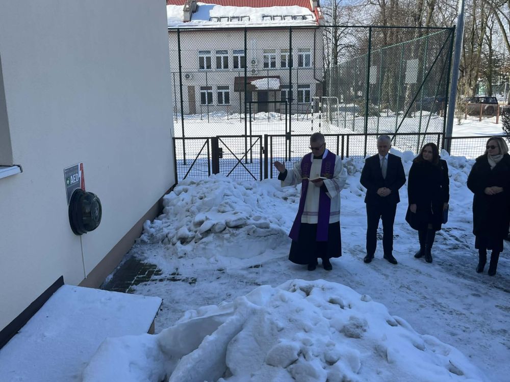 Po zakończeniu części oficjalnej młodzież szkolna miała okazję wzięcia udziału w warsztatach z ratownictwa medycznego podczas których uczniowie zapoznali się z funkcjonowaniem i obsługą nowego defibrylatora.