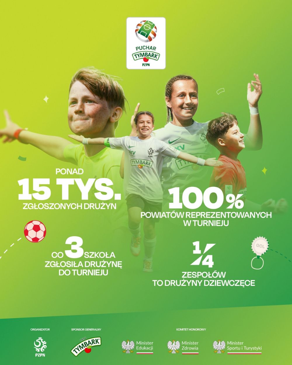 Tegoroczna edycja Pucharu Tymbark cieszy się ogromnym zainteresowaniem – do rozgrywek zgłosiło się ponad 15 tys. drużyn ze wszystkich powiatów w Polsce. To wyraźny sygnał, że piłka nożna pozostaje najpopularniejszym wyborem aktywności fizycznej dla najmłodszych, a Puchar Tymbark skutecznie dociera do dzieci z każdego regionu kraju. Dzięki temu turniej od lat pełni wyjątkową rolę – dla tysięcy dziewczynek i chłopców jest pierwszym sportowym doświadczeniem, szansą na odkrycie talentu, spełnienie marzeń i przeżycie piłkarskiej przygody.