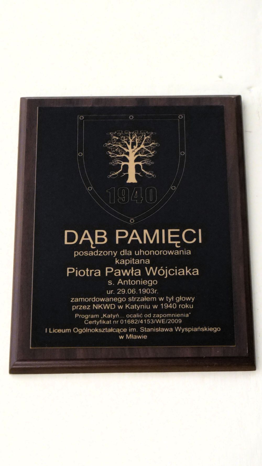 - I Liceum Ogólnokształcące im.Stanisława Wyspiańskiego w Mławie oddał hołd porucznikowi Piotrowi Pawłowi Wójciakowi, lekarzowi, który miał 37 lat w chwili śmierci w Katyniu.