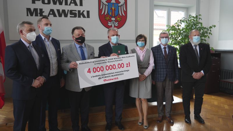 Dostaliśmy 4 mln na zadanie pod nazwą „Rozbudowa drogi powiatowej nr 2326W Wiśniewo-Wola Szydłowska na odcinku od 2+945,00 do km 4+441,00 w miejscowości Wyszyny Kościelne”. W piątek 30 kwietnia podpisaliśmy z Marszałkiem Województwa Mazowieckiego Adamem Struzikiem umowę dotyczącą dofinansowania tej inwestycji.